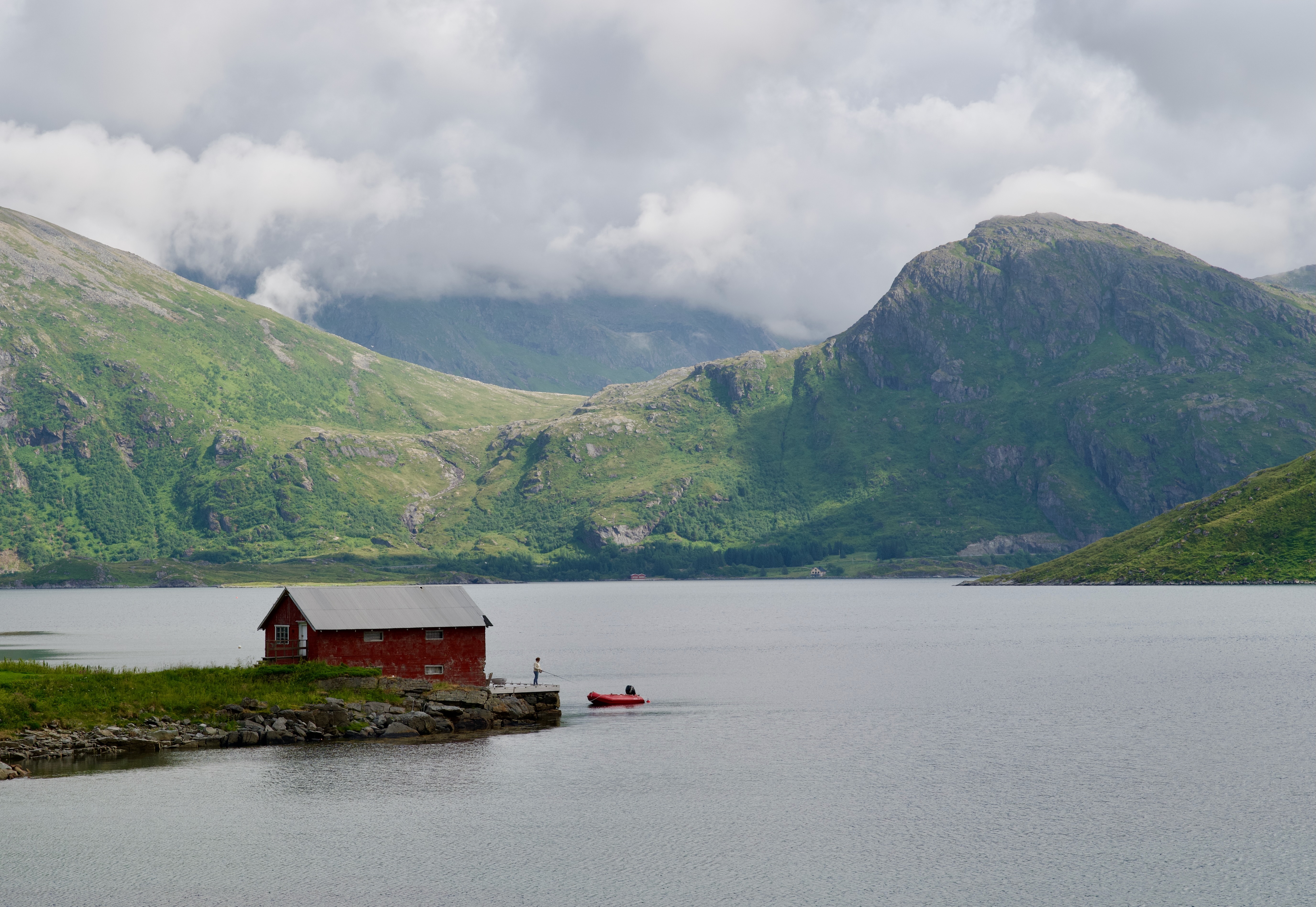 This image captured the essence of Norway as I experienced it. Traveling up and down the coast, I witnessed countless people fishing at the water’s edge. They were perched on the sides of roads, they were standing on bridges, and they were gathered on banks at every opportunity. That familiar sight, coupled with the red fishing hut, the giant water mass, and the green, granite-filled mountains, managed to capture it all.