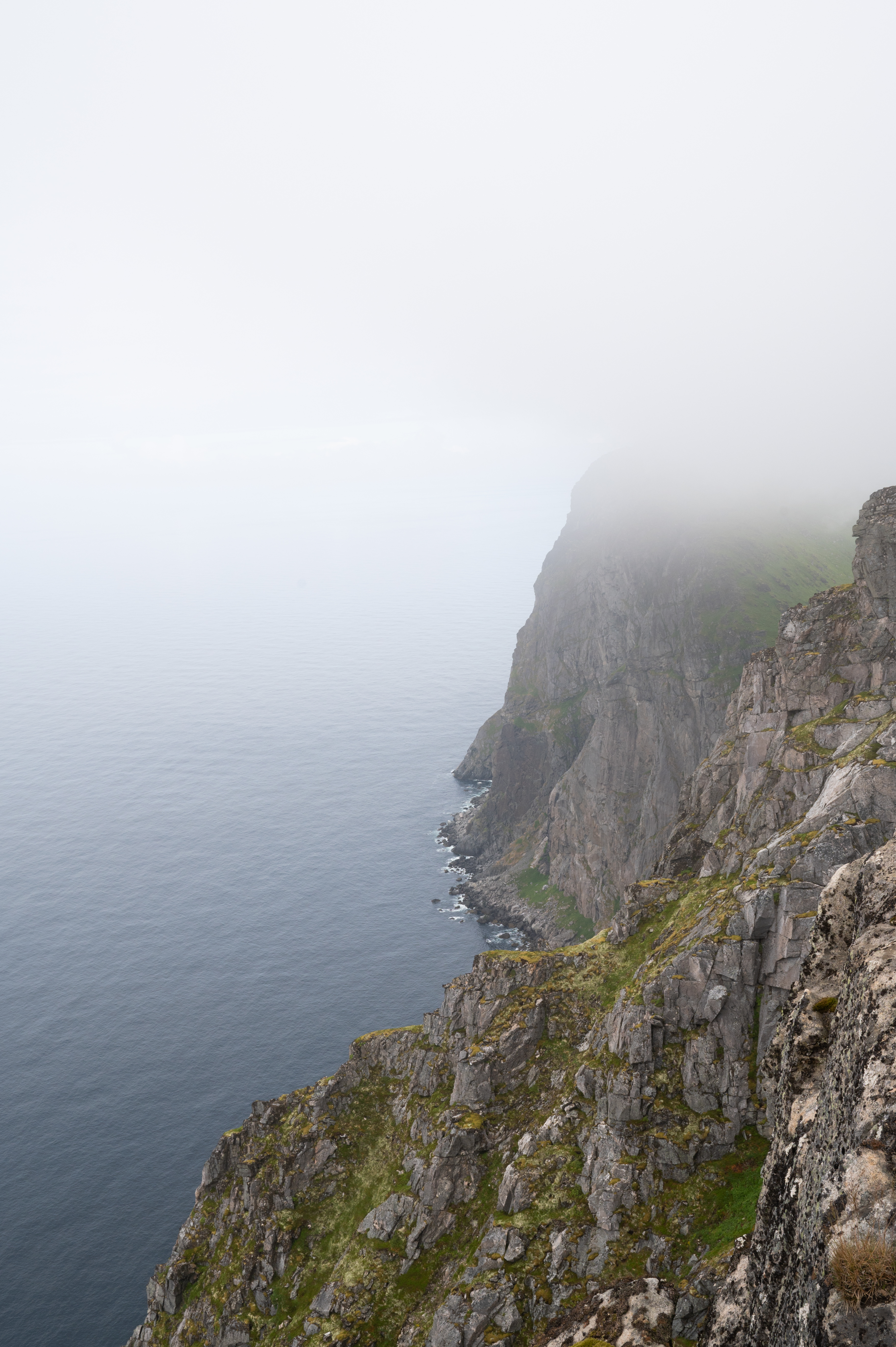 After food, photography, and rest I began the journey back down the slope to a junction where a very steep path dropped down to Kvalvika Beach. It was challenging and slow going with a mix of boardwalks, mud, and boulders to navigate.