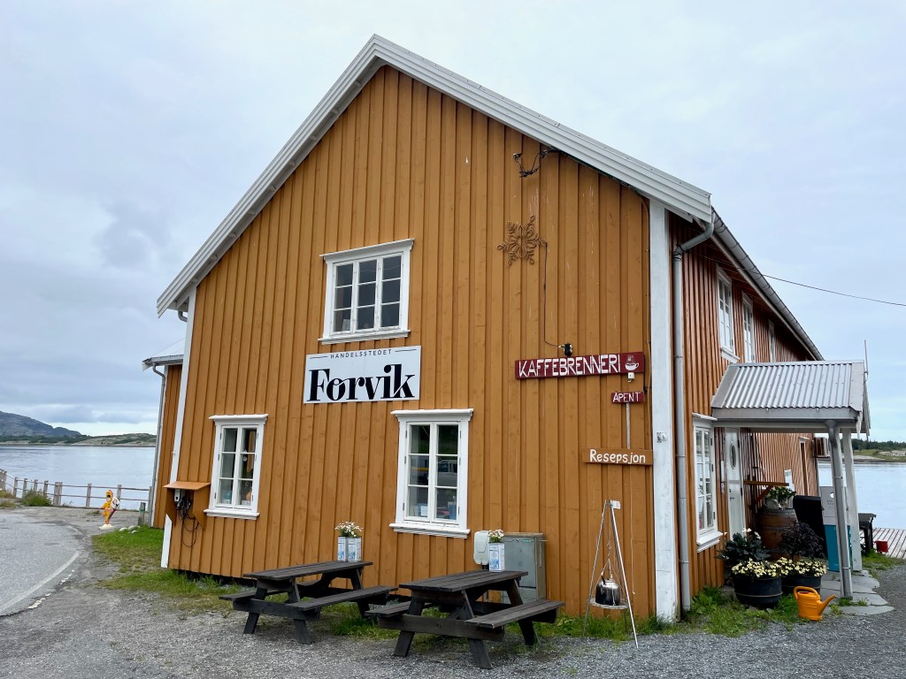 One of my favorite stops along Kystriksveien was the town of Forvik, which is only accessed by ferry. I had read about the Forvik coffee shop which occupies the site of a trading post dating back to 1792. I was eager to check it out but as I arrived later in the afternoon, I opted to camp at Steinmo Bobilparkering, a very affordable and scenic campground, perched right at the edge of the ocean, and visit the coffee shop the next morning.