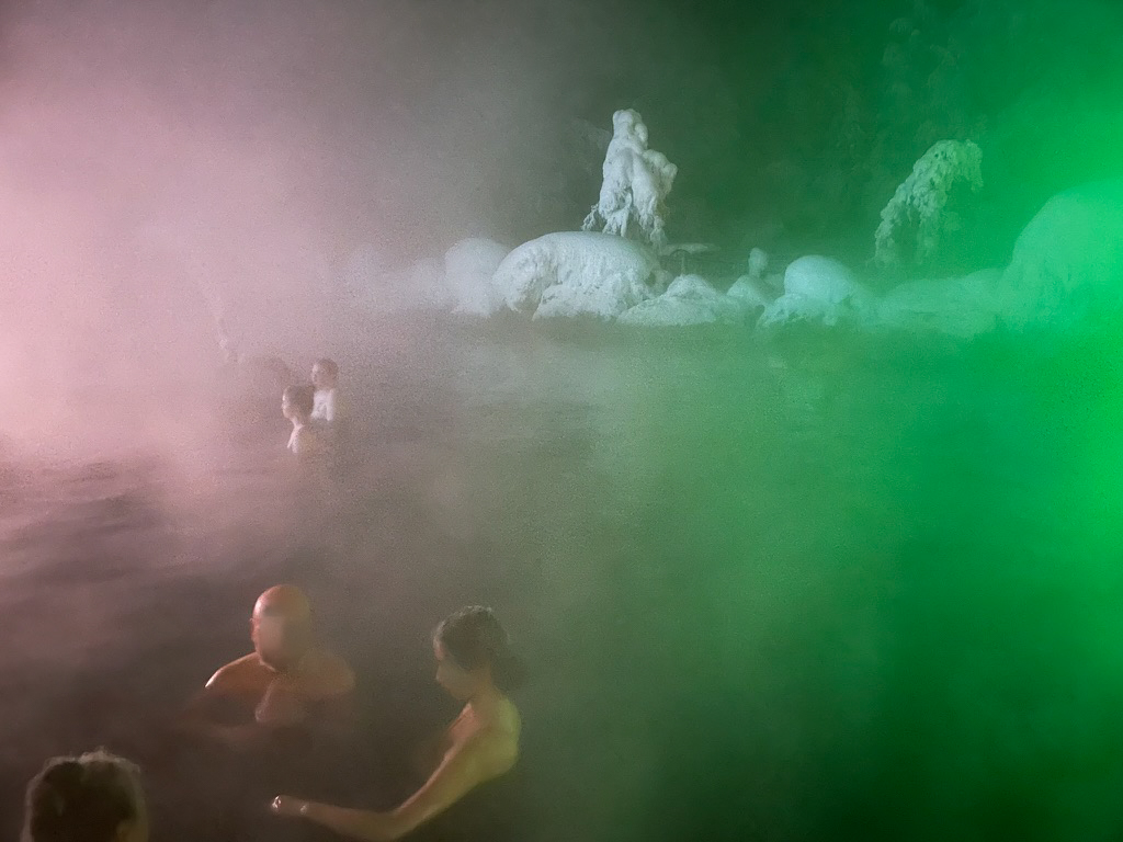 The heads visible through the steam resembled ice-goodnesses from Game of Thrones and I quickly realized why as my head took on the same form. Turns out that in these temps the steam immediately freezes to your hair. It did not take long for a literal ice cap to form! As funny as it was I also felt silly for not wearing a beenie to prevent it. It actually took quite a bit of focus to avoid touching my head knowing that doing so would break my hair off. And not just my hair, my eyelashes were frozen!