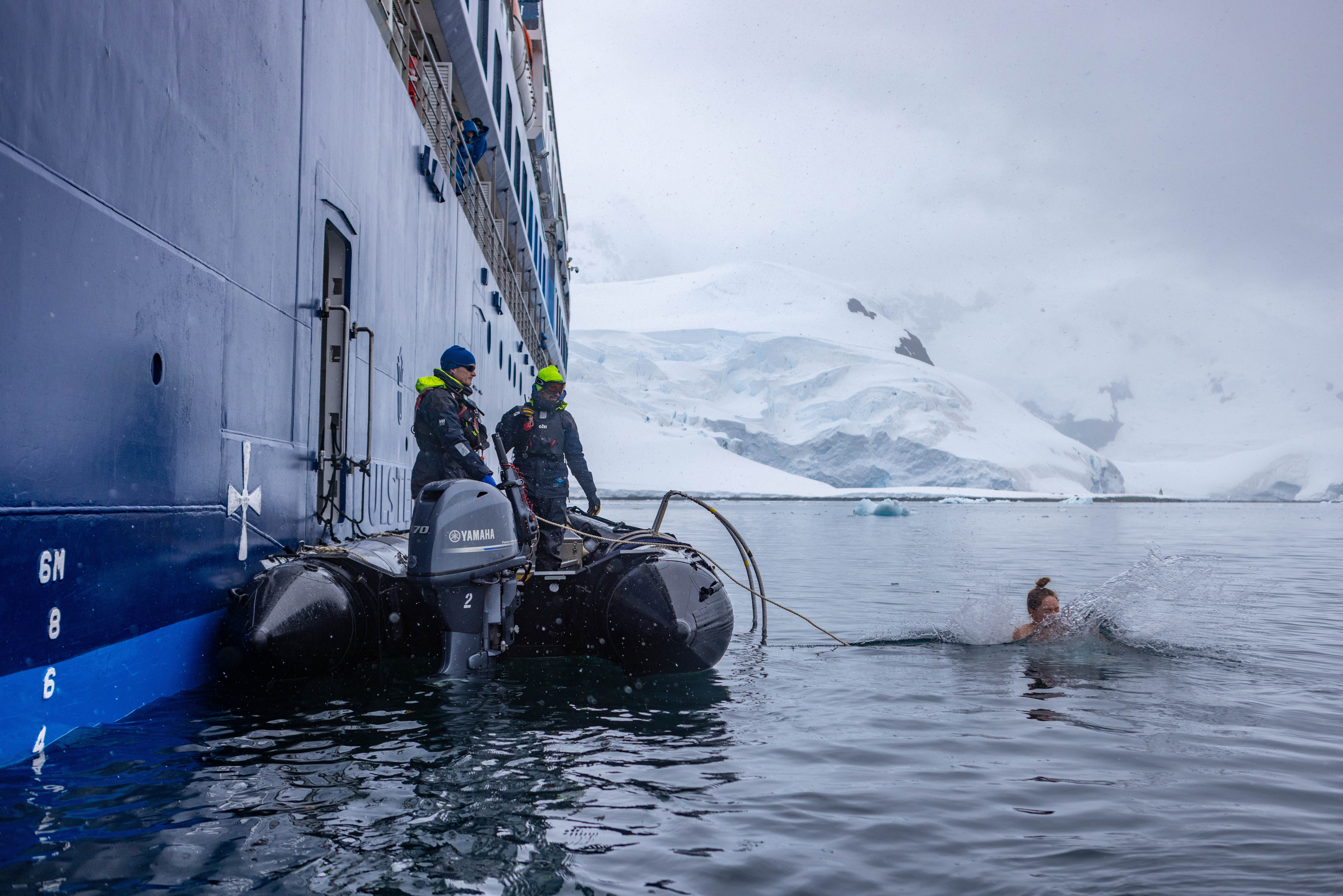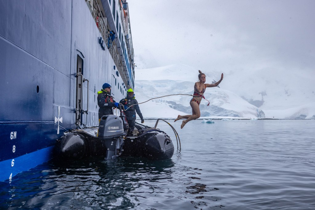 As we enjoyed lunch, the Ocean Victory was piloted to our second position for the day, Paradise Bay. This was not only the site of another zodiac excursion but also where the fearless (crazy?) polar plungers would get their fix!