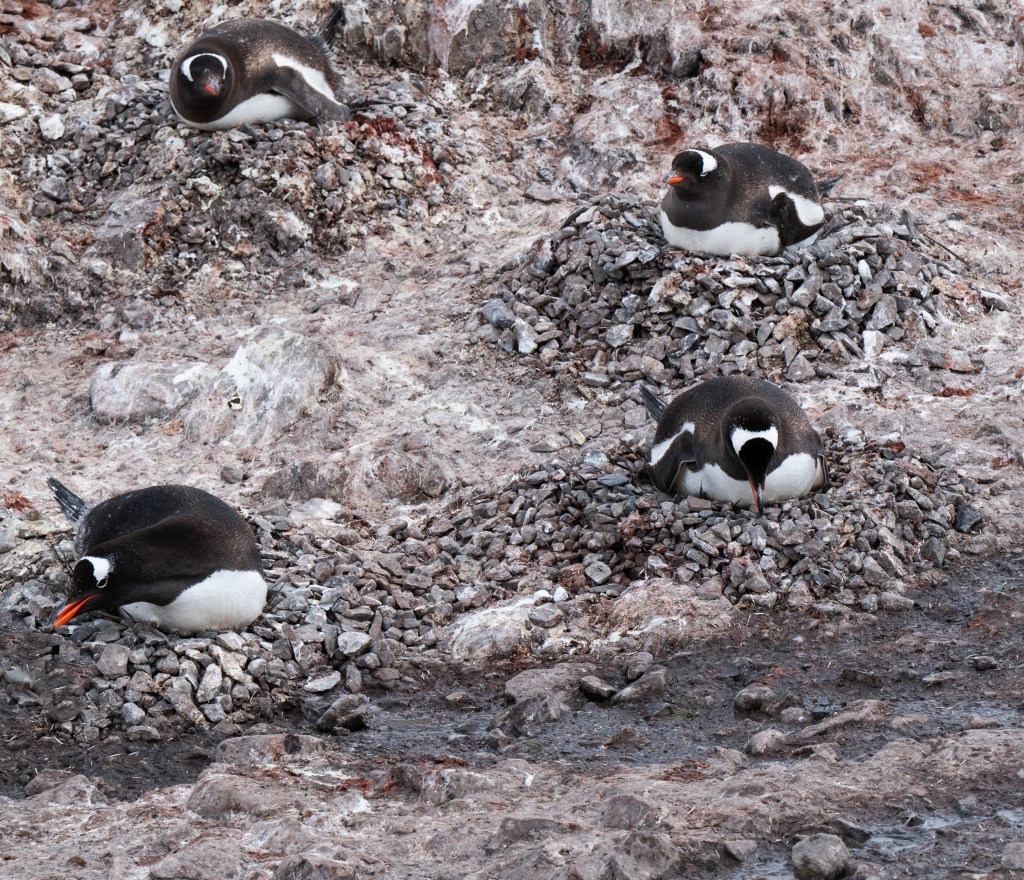 Penguins are busy, busy, busy! They shuffle around, they bicker, they stick their beak straight up to the sky and call out, to their mate, in protest, just because. I don’t know. They are loud and they are stinky. They are always working to improve their rock-constructed nests. At all times, groups of them are heading out to sea, and as many are returning. This was their reproductive window. It was go-time!
