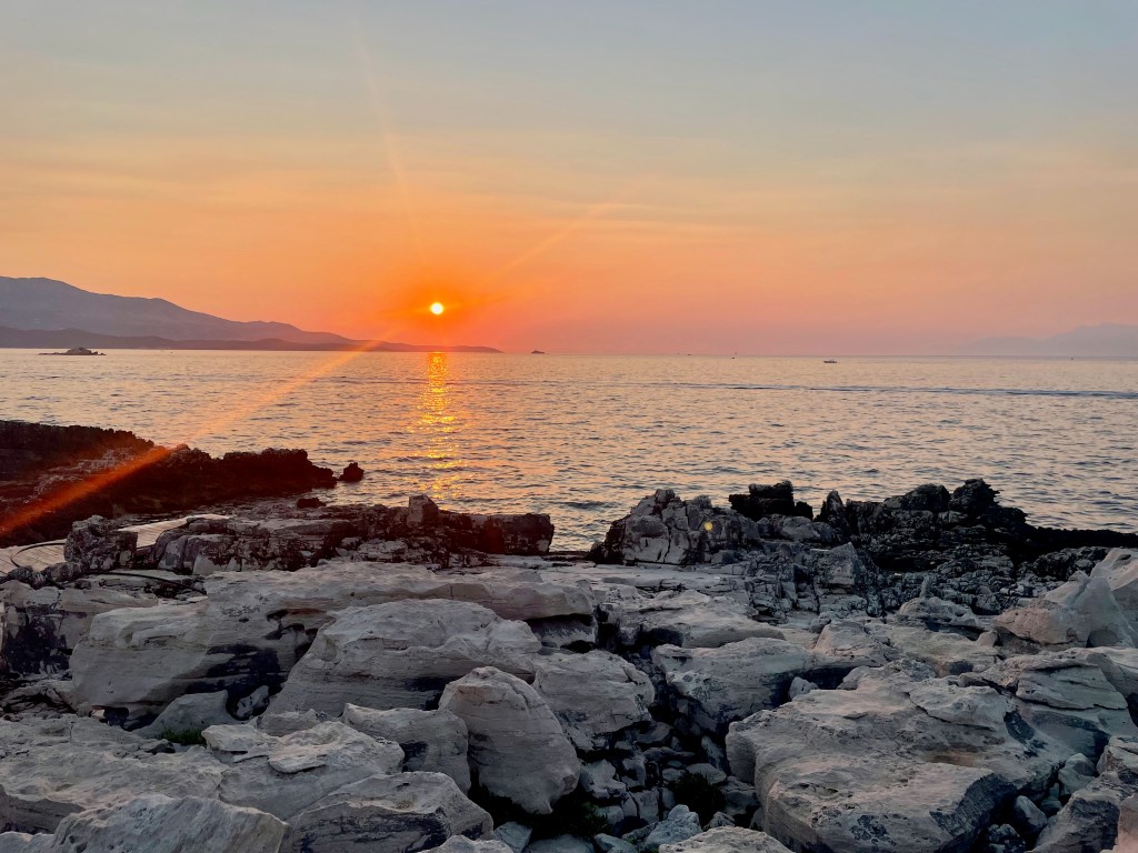 Determined to make the best of it, I finally found a rocky section of the coast that I could sit atop to enjoy my first sunset over the Adriatic.
