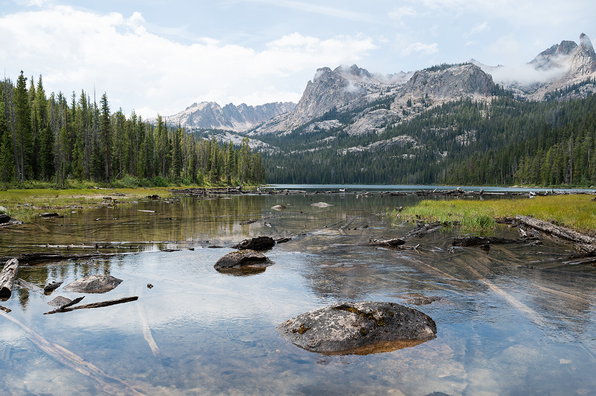 Two days later, I culminated my time in the Sawtooths with a hike up to Hell Roaring Lake. This is a popular backpacking route and for good reason. The relatively easy hike provides some of the quickest and least physically demanding access to the backcountry. As I hiked through the many miles of forest that led to this scenic lake, I realized that my instinct to choose a lower-elevation hike over a more popular hike in the high country had served me well. Huge thunderstorms began rolling in, casting heavy rain, lightning, and thunder all over the area. I considered turning around until I noticed the clouds were headed away from my direction. Soon, the skies began to clear.